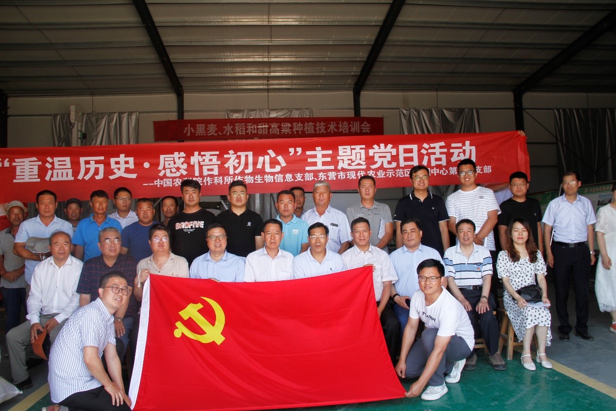 6月21日,支部为践行院党史学习教育领导小组的“我为群众办实事”活动要求,对照东营盐碱地的实际情况,邀请专家在所东营基地举办一场小黑麦、甜高粱、营养紫米等内容的种植技术培训讲座,东营市科协党组成员仲地杰主任、市农科院副院长娄易金华、市现代示范区管理中心党组成员胡春喜副书记、当地企业负责人和种粮大户到场参加活动。讲座中,孟凡华副研究员的小黑麦种植技术得到领导、种植大户的关注,李桂英研究员的甜高粱生产技术和经验感悟深得赞同,郭林博士的紫米给当地群众带来了对现代农业新的认识,活动反应热烈。