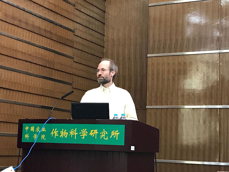 On October 28, 2018, Dr. Edward S. Buckler visited the Institute of Crop Sciences (ICS). He is an academician of American Academy of Sciences, a senior scientist in the field of plant genetics at United States Department of Agriculture - Agricultural Research Service (USDA-ARS), and an adjunct professor of plant breeding at Cornell University.