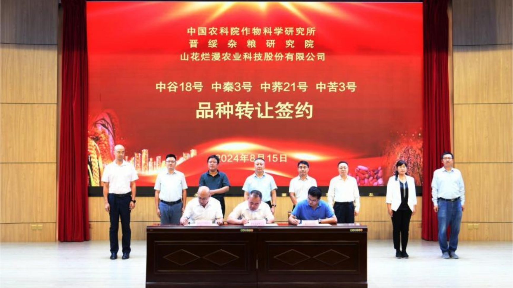 会议期间,作科所武晶研究员,兴县县委常委、常务副县长、晋绥杂粮研究院副院长贺建强,山花烂漫农业科技股份有限公司董事长贺虎平代表三方就“中谷18号”、“中秦3号”等杂粮新品种经营权转让进行签约。还召开了中国作物学会食用豆专委会会员大会,中国作物学会食用豆专委会进行了换届选举,作科所武晶研究员当选会长。