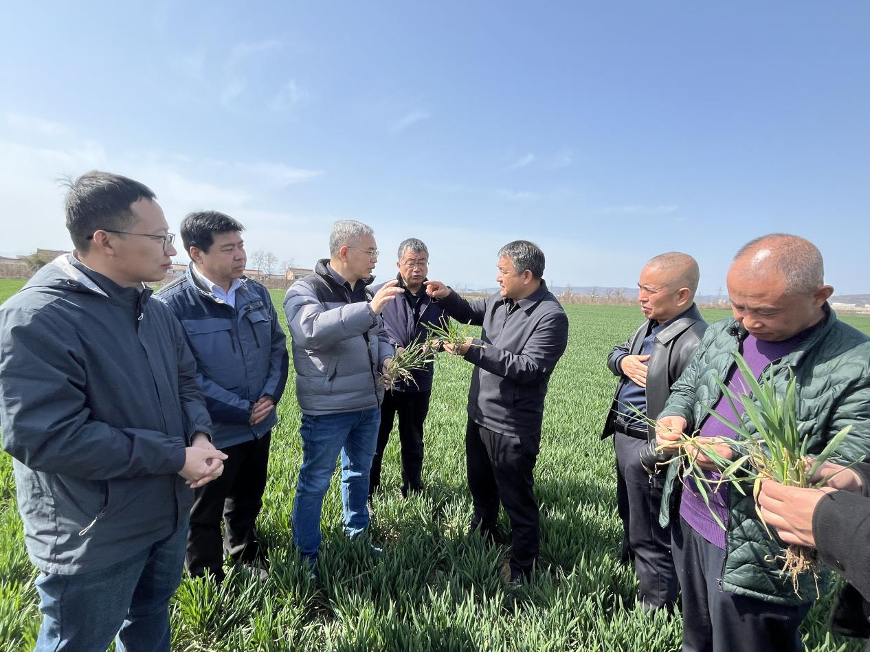 3月18日至22日,按照农业农村部奋战120天夺夏收粮油丰收行动统一部署,中国农业科学院小麦产业专家团陕西省科技小分队在临时党支部书记李建才同志带领下前往陕西省宝鸡市、西安市和渭南市调研6个区县小麦生长及春管情况,辐射小麦面积约920万亩。其中包括凤翔、临潼、蒲城、大荔等4个整建制单产提升县(陕西省总计5个小麦整建制大面积单产提升县)。科技小分队实地查看了有代表性的壮苗、旺长苗及弱苗田的小麦苗情长势、土壤墒情、病虫害发生情况,详细了解了各地播种情况、已经落施的田间管理措施和下一步的田管工作计划,针对实际苗情及田间存在的主要问题提出了相应的管理建议。总计完成现场培训及指导12次,发放产业专家团编制的《陕西小麦大面积单产提升技术模式图》500余份。