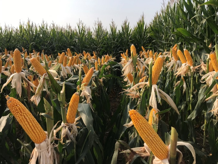 产量表现:黄淮海夏玉米组,2019 年生产试验平均亩产 696.6 千克,比对照郑单 958 增产 8.5%;国家玉米品种联合体试验东华北中晚熟春玉米组,2022 年生产试验平均亩产 839 千克,比对照增产 8.0%;国家玉米品种联合体试验西北春玉米组,2022 年生产试验平均亩产1025 千克,比对照增产 5.0%。