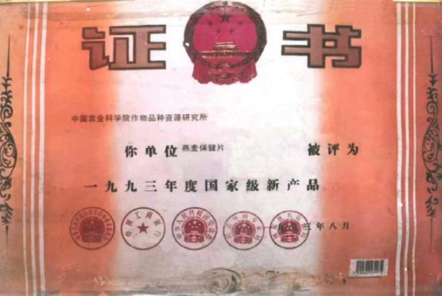 1993年“世壮”牌燕麦保健片获评“国家级新产品”