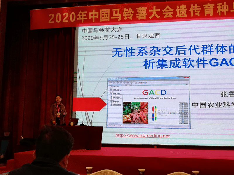 围绕大会主题,七名国内外专家做了大会主题报告,19位专家和青年学者在遗传育种与生物技术、栽培技术与病虫害综合防治、马铃薯加工与环境保护为主题的专题研讨会上做了专题学术报告。王老师应邀做题为“无性系F1群体遗传分析方法”的大会主题报告,系统介绍了课题组近年来提出并发展的杂合亲本杂交F1群体的重组率估计、连锁分析和基因定位方法、杂合亲本杂交F1与纯系亲本双交F1的等价性等。张老师做了题为“无性系杂交后代群体的遗传分析集成软件GACD”的大会专题报告,详细介绍了GACD软件的主要功能、界面、编码方式、输入输出文件和结果图形展示等内容。两位老师还参观了香泉马铃薯品种展示及标准化生产基地、香泉马铃薯扶贫产业园,了解了马铃薯的产业化种植、种薯培育等相关内容。下一届中国马铃薯大会将于2021年7月在陕西省榆林市召开,主题为“马铃薯产业与绿色发展”