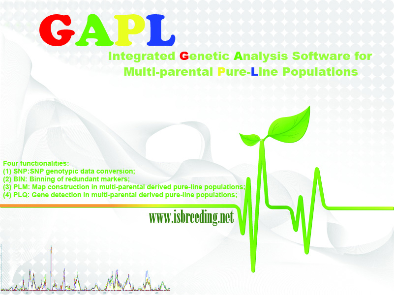近年来,多亲群体逐渐成为了植物育种中重要的遗传资源。GAPL (Genetic Analysis Software of Pure Line Populations) 是一个界面友好、能够在四交和八交衍生纯系群体中构建高密度连锁图谱、开展数量性状基因 (QTL) 定位的集成软件。软件1.2版本实现了四个功能。(1)SNP基因型数据转换的SNP功能;(2) 去冗余标记的BIN功能;(3) 连锁图谱构建的PLM功能; (4) 基因定位的PLQ功能。