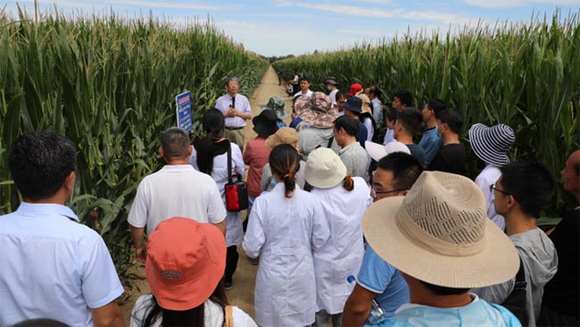李少昆介绍,密植高产技术主要是指“密植增穗增产,培育高质量抗倒群体,增加花后群体物质生产和高效分配”为核心的产量突破途径,“一般农户的田地中,每亩约收获玉米3500穗,而我们将播种密度提高到每亩7000-8000株。发挥群体优势是现阶段玉米增产的可行途径。”