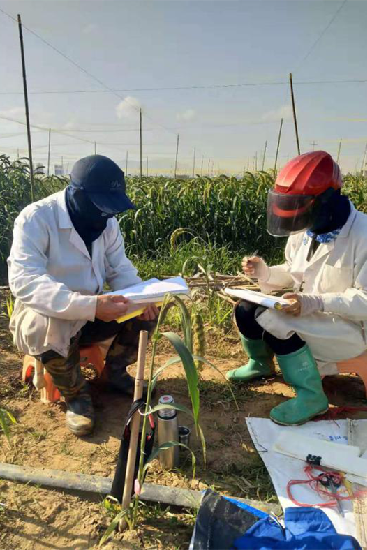 南繁基地转基因地块距离宿舍楼大约2公里,平日里南繁科研人员都开电动三轮车下地工作。但是疫情防控限制了机动车使用,为不耽误科研工作,科研人员不辞辛苦,坚持每天往返步行2小时下地工作。特别是玉米优质抗逆育种创新研究组的徐忠轩同志,在玉米虫害严重、地块用水不便的情况下,他每次都步行至距离田块1公里多的宽口井用水桶挑水兑药,完成12亩试验田的打药防虫工作,高强度劳动让他大汗淋漓。但他对所里的防控措施表示充分理解:“特殊时期,基地严控交通工具出行,为的是不让大家到人员密集场所,降低疫情发生风险,我是一名工人党员代表,更有责任起到模范带头作用。”
