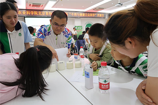 北京畜牧兽医研究所,牛奶与健康科学小实验中,家长和孩子们聚精会神。