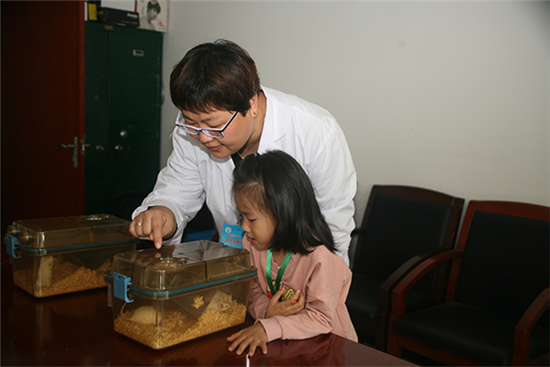 特产研究所特种动物繁殖创新团队副研究员李晓霞给小朋友讲解实验用小鼠的特性。