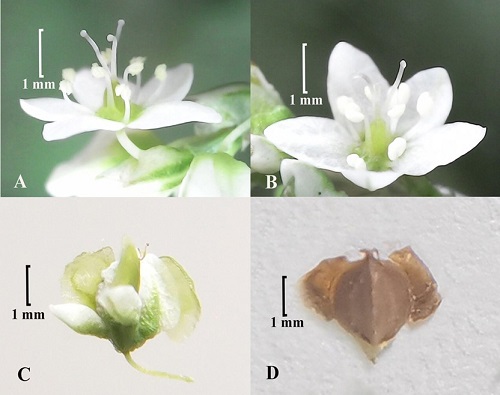 迄今为止,荞麦属植物所有种类的花以2种类型为主,一种为二型花(花柱异长),为异花授粉自交不亲和;另一种类型为同型花(花柱等长),为自花授粉自交亲和。目前的21个种中有13个是二型花,8个是同型花。此次发现的长花柱野生荞麦是异型花柱中唯一的单型花荞麦种,即仅有长花柱(短雄蕊)型花(图二),而且自交亲和,打破了传统上对荞麦属花型的认知。该种的发现为荞麦产量育种和荞麦属起源驯化提供了重要的材料基础,也为植物花型进化和自交亲和性研究提供了重要的基因资源。