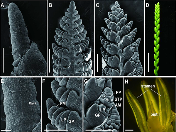 据悉,小麦穗的发育经历二棱期、小穗发育期、小花发育期、小花成熟期等关键时期。其中,二棱期是小穗发育初始时期,决定小穗原基的多少;小穗发育期是小花原基形成的时期,决定小花数目的多少;小花发育期则决定小花原基能否成功发育成小花,而小花成熟期是雌雄蕊发育期,决定小花的育性。小麦的每个小穗能产生多到8个以上的小花原基;但最后只有3-4个能够发育生成籽粒。因此,小麦穗发育的早期状态直接影响小麦的最终产量。但是,迄今为止,人们对该过程中的基因调控及网络却知之不多。