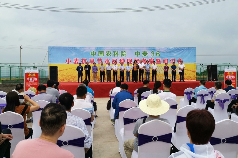 6月17日,由中国农业科学院作物科学研究所主办,陕西省宝鸡市农业技术推广中心、陕西省宝鸡市陈仓区农业局、陕西九丰农业科技有限公司协办的“小麦抗旱节水品种中麦36现场考察暨研讨会”在陕西省宝鸡市召开。会议由作科所副所长刘录祥主持。