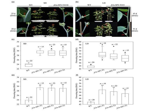 近日,中国农业科学院作物科学研究所植物转基因技术研究中心、大豆分子育种技术和应用创新团队在《Plant Biotechnology Journal》杂志上在线发表了题为“CRISPR/Cas9-mediated targeted mutagenesis of GmFT2a delays flowering time in soybean”的研究论文,报道了该团队利用CRISPR/Cas9基因组编辑技术定点敲除大豆开花调控关键基因GmFT2a,成功创制出“无外源基因(transgene-clean)”、可稳定遗传的大豆晚花突变体材料。