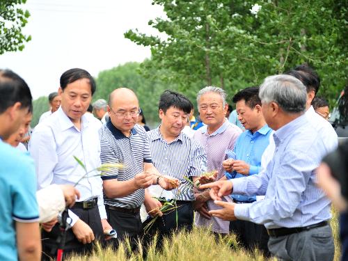 5月23日,由中国农业科学院作物科学研究所主办的“小麦绿色增产增效技术集成模式研究与示范现场观摩与产业竞争力提升座谈会”在河南省新乡市举行。中国农科院党组书记陈萌山、河南省农业厅副厅长魏蒙关、新乡市副市长李刚、山东省农业科学院赵振东院士、河南省农业科学院院长张新友院士、农业部种植业司副司长潘文博、全国农业技术推广服务中心主任陈生斗、农业部科教司产业技术处处长张文、农业部种子管理局种业发展处处长马志强、全国农业技术推广服务中心粮食处处长吕修涛等领导专家出席了活动。座谈会由中国农科院副院长王汉中主持。