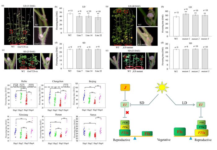 中国农业科学院作物科学研究所大豆育种技术创新与新品种选育创新团队系统解析了一个新的大豆花期调控关键基因 GmFT2b 的遗传效应,并提出了大豆花期调控的“天平”模型,为大豆品种的区域适应性改良和分子设计育种提供了新技术、新材料。该研究成果于1月25日在线发表在《植物,细胞与环境( Plant , Cell & Environment )》。