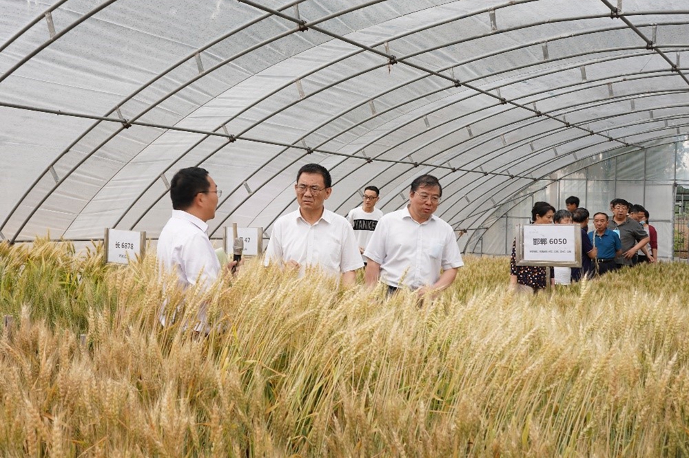6月9日,中国农业科学院作物科学研究所举办“小麦藏粮于技计划优异抗逆种质资源田间展示暨研讨会”,展示了小麦基因资源发掘与利用创新团队筛选出的455份表型多样的抗旱耐热小麦种质,其中蕴藏着丰富的抗旱耐热基因资源,可供小麦育种家们按需选择利用。中国农科院党组书记张合成、副院长万建民院士,中国工程院刘旭院士、程顺和院士、康振生院士、胡培松院士,院办公室主任王晓举、科技管理局局长任天志、成果转化局局长王述民,作科所领导班子、“藏粮于技”项目组专家等领导和专家通过现场以及视频连线出席了会议。