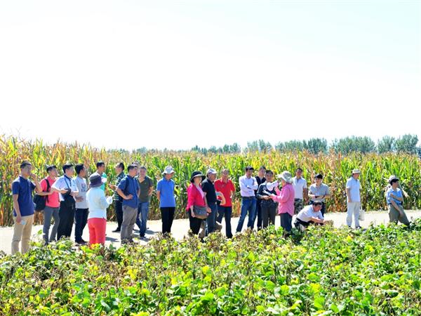 在廊坊试验基地,重点考察了玉米小双行增密、推茬清垄播种等绿色高产增效栽培技术。小双行错位密植栽培新技术,可以有效地提高群体容量约500株,产量提高10%左右,该新型种植方式与自行研发的配套机械结合形成玉米推茬清垄播种一体化技术体系,可同时实现推茬、清垄、深施肥、小双行密植精播效果,实现了农机与农艺的结合,有效地解决了夏玉米播种时前茬小麦秸秆量大,播种困难,出苗不整齐等问题,目前该技术体系已在北京通州,吉林长春、天津等地进行推广应用,增产效果显著。