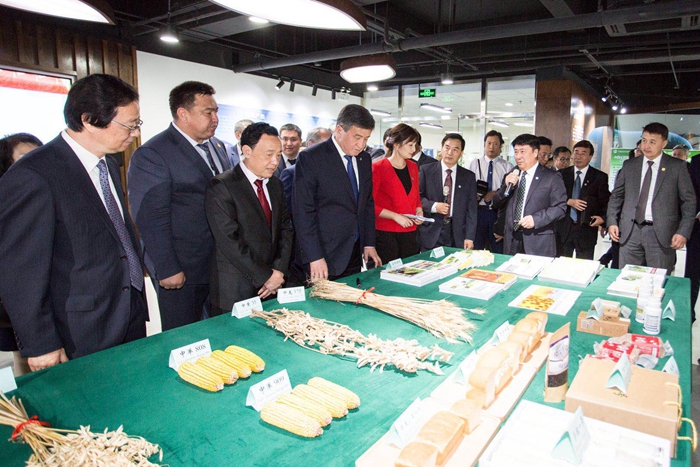 6月8日下午,吉尔吉斯斯坦总统热恩别科夫在中国驻吉大使肖清华陪同下率团访问中国农业科学院。中国农业农村部副部长屈冬玉、中国农业科学院院长唐华俊、副院长吴孔明等领导在中国农科院作物科学研究所科技展厅接见了热恩别科夫总统一行,作科所所长刘春明、党委书记孙好勤参加了接见。
