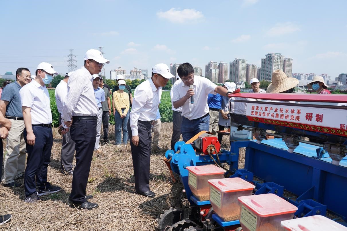 副所长刘录祥首先介绍了作科所落实“藏粮于技”任务的总体情况和本次观摩活动的意义。韩天富研究员介绍了大豆“藏粮于技”的主要内容和核心技术要点。吴存祥研究员对免耕覆秸播种机基本结构和工作原理进行了简要介绍。随后,与会人员观摩了麦茬大豆免耕覆秸播种技术演示及示范田大豆长势。