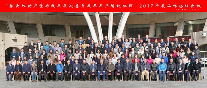 2018年3月7日至9日,国家重点研发计划“粮食作物产量与效率层次差异及其丰产增效机理”项目2017年度工作总结会议在山东泰安召开。农业部科技发展中心副主任聂善明、科技部农村司杜万里教授、项目专员鞠辉明博士、重点专项管理专家委员会委员郭天财教授、山东农业大学副校长高东升、副校长王振林等领导和专家,以及项目参加人员共176人参加了会议。
