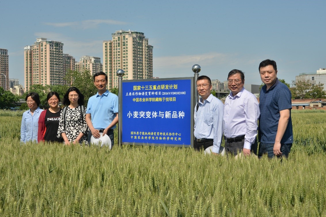 陈成副主任一行现场考察了作科所中圃场基地,刘录祥研究员介绍了“小麦诱变育种技术创新与品种创制”课题在诱变育种技术创新、突变体创制与品种选育方面的实施成果。该项目研发建立了多样化地面模拟辐射诱变育种技术和工程化的细胞离体诱变技术,定向鉴选出株高、分蘖力、叶型、穗型、抗病性、优质等小麦特色表型梯度突变体千余份,育成了航麦247、航麦287、航麦501和航麦2566等4个航麦系列小麦高产节水新品种,以上品种分别通过国家和省级审定,并实现了科技成果转化。