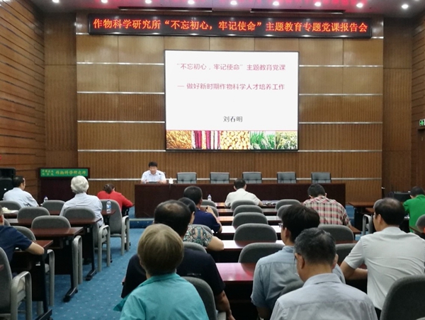 根据中央和部院党组 “不忘初心、牢记使命”主题教育要求及所党委工作部署,8月20日,作科所开展领导干部讲专题党课活动。在前期主题教育学习和调研的基础上,所长刘春明、党委书记范静分别以“不忘初心、牢记使命,做好新时期作物科学人才培养工作”、“坚守初心使命 努力打造政治过硬作风扎实的基层党组织”为主题作了党课报告。院主题教育第十指导组成员程高祥处长出席了会议,会议由党委办公室主任杨建仓主持。