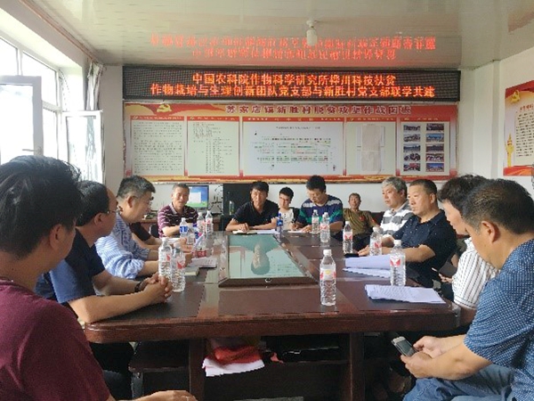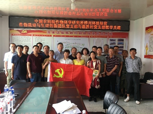 黑龙江省桦川县是中国农业科学院“科技扶贫”示范县,由作物科学研究所负责牵头实施。按照所党委安排,作科所作物栽培与耕作中心负责承担科技扶贫项目工作任务。按照院党组“脱贫攻坚主战场在哪里,中国农科院的专家团队就在哪里”的指示精神,结合“支部建在创新团队上”,作物栽培与生理创新团队党支部与桦川县苏家店镇新胜村党支部开展了共建活动,积极探索党建和科研、扶贫相互促进的工作模式。创新团队的科技人员中党员占多数,村党支部的成员是农户中的先进代表,两个党支部的合作有效地推动了“科技扶贫”工作的进展。项目开展之初,通过两个党支部的对接,村支部成员提供当地生产条件并提出技术需求,创新团队支部组织各方资源提供技术支持,共同完成了科技扶贫的技术方案。项目实施期间,村支部党员身先士卒协调示范基地,组织人员配合实施,创新团队党员以身作则亲力亲为实施各项技术、进行技术培训。共同的目标、共同的身份把两个党支部联系在一起,党建工作和科技扶贫都开展的有声有色,也带动了周边群众对这项工作的重视和认可,充分发挥了党支部战斗堡垒作用和党员的先锋模范作用。