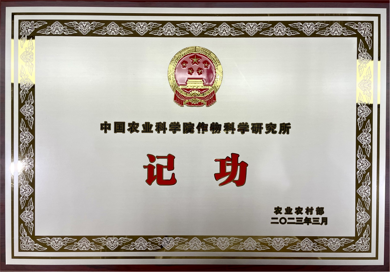 近日,农业农村部人事司开展关于守好百姓“米袋子”“菜篮子”专项任务及时奖励,作物科学研究所获集体记功奖励、刘录祥研究员获个人记功奖励、肖永贵副研究员获个人嘉奖。