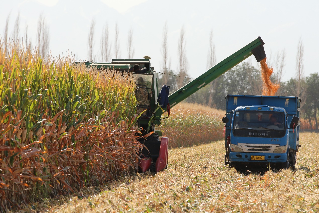 参会人员现场观摩了位于新疆建设兵团第六师奇台总场示范田的4类16项试验研究,测产结果显示,再次重现亩产超1500公斤的高产纪录。此块试验基地面积为200亩,由作物栽培与生理创新团队经过12年的建设和投入,己连续六次创造全国玉米高产纪录,最高亩产1517.11公斤。观摩会上,绿色发展技术集成模式研究与示范技术总师李少昆研究员介绍,示范田通过选用耐密高产品种,构建高质量群体,实施密植高产全程机械化栽培和水肥一体化技术,充分挖掘良种、良法与光温水肥资源的增产潜力,粒收观摩田亩产达到1100公斤,籽粒成熟度高、含水率适宜粒收。机械粒收现场演示,收获籽粒破碎率、杂质率及损失率均处于较低水平,观摩农户对示范田的收获密度、玉米产量及粒收质量赞不绝口。今年,试验点周边10万亩示范生产地亩产达到1000公斤水平,全部进行机械粒收、烘干收储和秸秆还田。