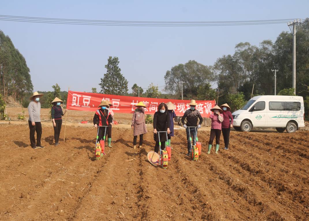南宁综合试验站食用豆与甘蔗间种示范田播种现场