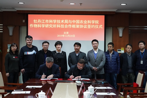 12月20日,中国农业科学院作物科学研究所与黑龙江省牡丹江市科技局签署科技合作框架协议,双方将进一步加强农业科技合作,助力牡丹江市乡村振兴和农业高质量发展。作科所所长刘春明和牡丹江市副市长苏凤仙分别致辞,作科所副所长刘录祥与牡丹江市科技局局长刘成刚代表双方在协议上签字。