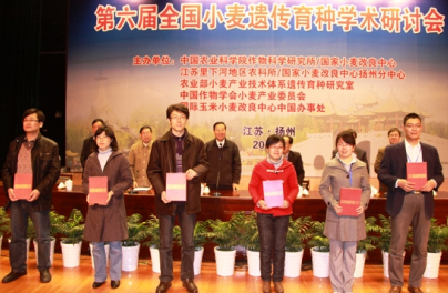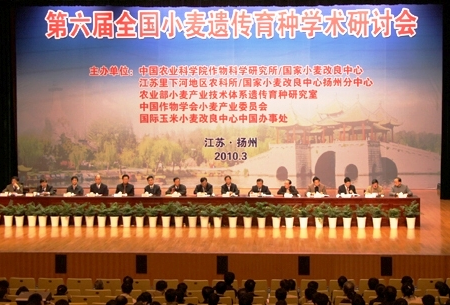 由中国农业科学院作物科学研究所/国家小麦改良中心、江苏里下河地区农科所/国家小麦改良中心扬州分中心、国家小麦产业体系遗传育种研究室、中国作物学会小麦产业分会和国际玉米小麦改良中心共同举办的第六届全国小麦遗传育种学术研讨会于2010年3月28日至31日在扬州举行,参加这次盛会的有来自20多个省市的代表约600人,主要领导和专家有中国农业科学院翟虎渠院长、江苏省曹卫星副省长、李振声院士、程顺和院士、江苏农科院严少华院长、扬州市谢正义市长、扬州市洪锦华副书记、纪春明副市长、郑有良教授、袁汉民研究员、孙其信教授、辛志勇研究员、贾继增研究员和魏益民研究员等。除国内代表外,还特邀澳大利亚联邦科工组织的Richard Richards博士、美农部的Edward Souza博士介绍国际小麦遗传育种最新进展。
