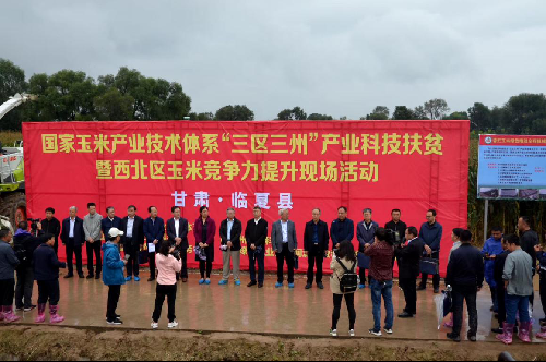 9月21日,国家玉米产业技术体系“三区三州”科技扶贫暨西北区玉米竞争力提升行动会议在甘肃省临夏回族自治州举行。会议观摩了青贮玉米丰产绿色增效示范基地及机械化收割现场,召开了科技助力精准扶贫和玉米高质量发展论坛。农业农村部科技发展中心副主任陈彦宾、二处处长张昭,农业农村部科技教育司产业技术处处长邵华莎,中国农业科学院作物科学研究所副所长刘录祥,国家玉米产业技术体系首席科学家李新海研究员,以及甘肃省农业农村厅、甘肃省农业科学院、临夏州及临夏县等领导和专家出席活动。