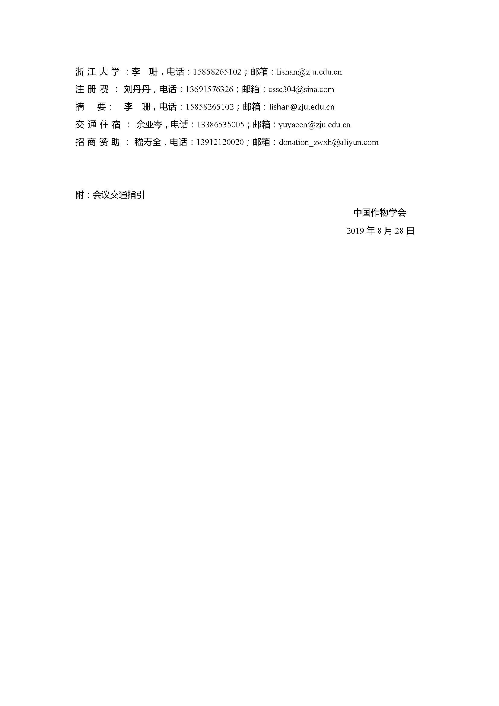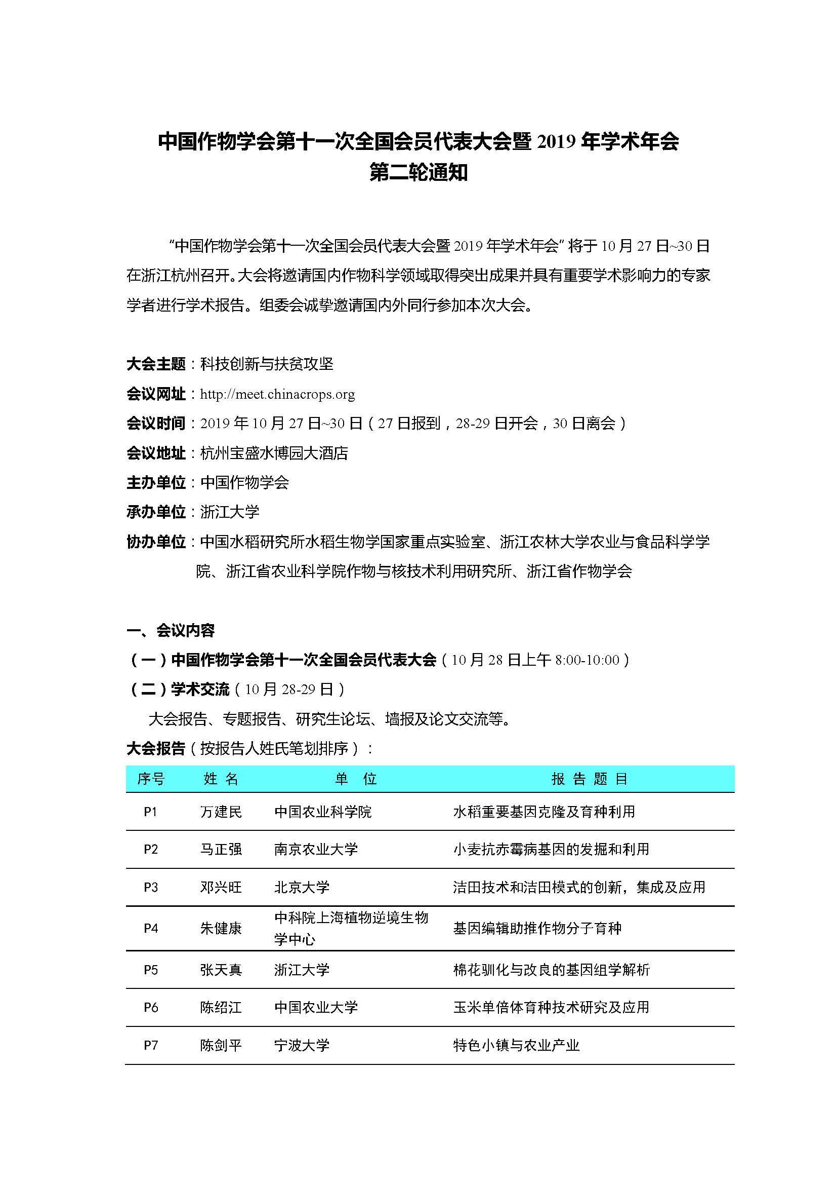 中国作物学会第十一次全国会员代表大会暨2019年学术年会