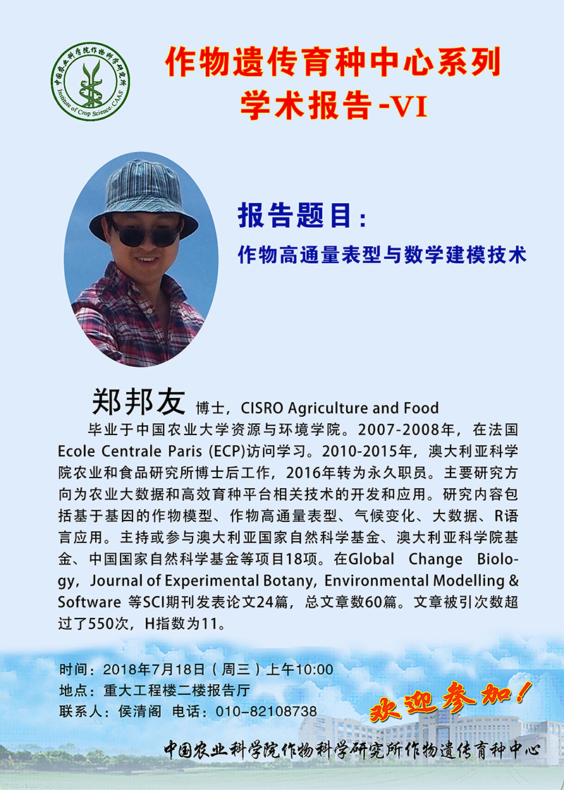 7月18日 郑邦友 作物高通量表型与数学建模技术
