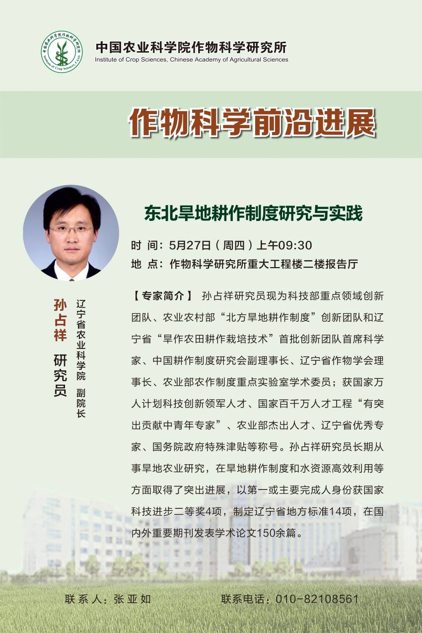 【作物科学前沿进展】孙占祥研究员 东北旱地耕作制度研究与实践