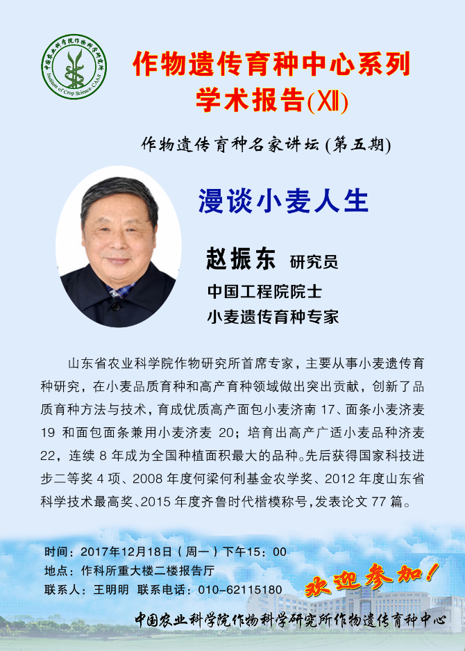 12月18日 赵振东 作物遗传育种名家讲坛(第五期)漫谈小麦人生