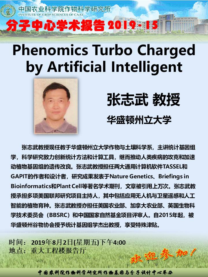 张志武 Phenomics Turbo Charged by Artificial Intelligent(分子中心学术报告2019-15)