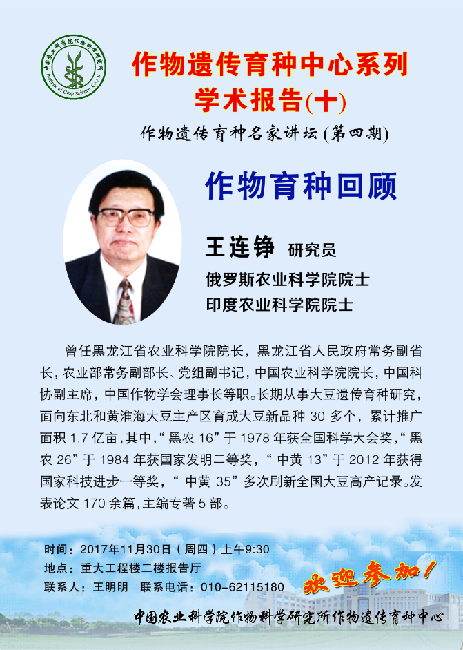 11月29日 许如根,朱睦元 大麦种质资源主要性状的鉴定与育种利用研究 浅谈大麦(青稞)营养分析及其遗传改良探索