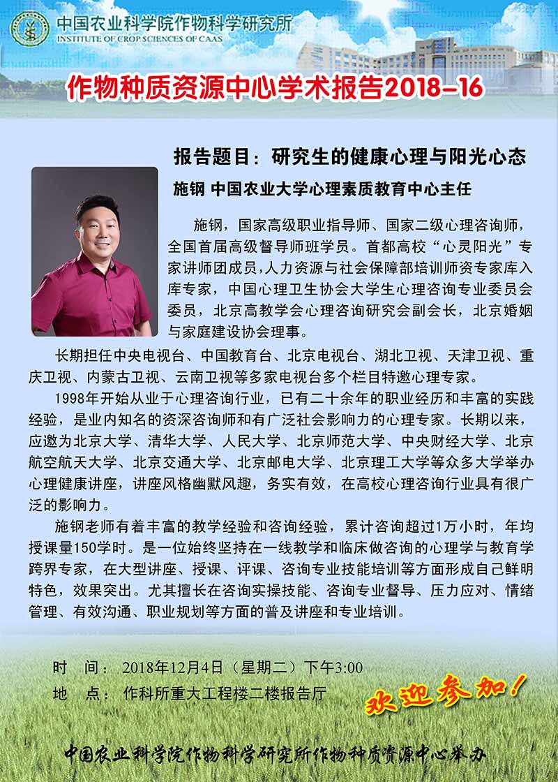 施钢 研究生的健康心理与阳光心态
