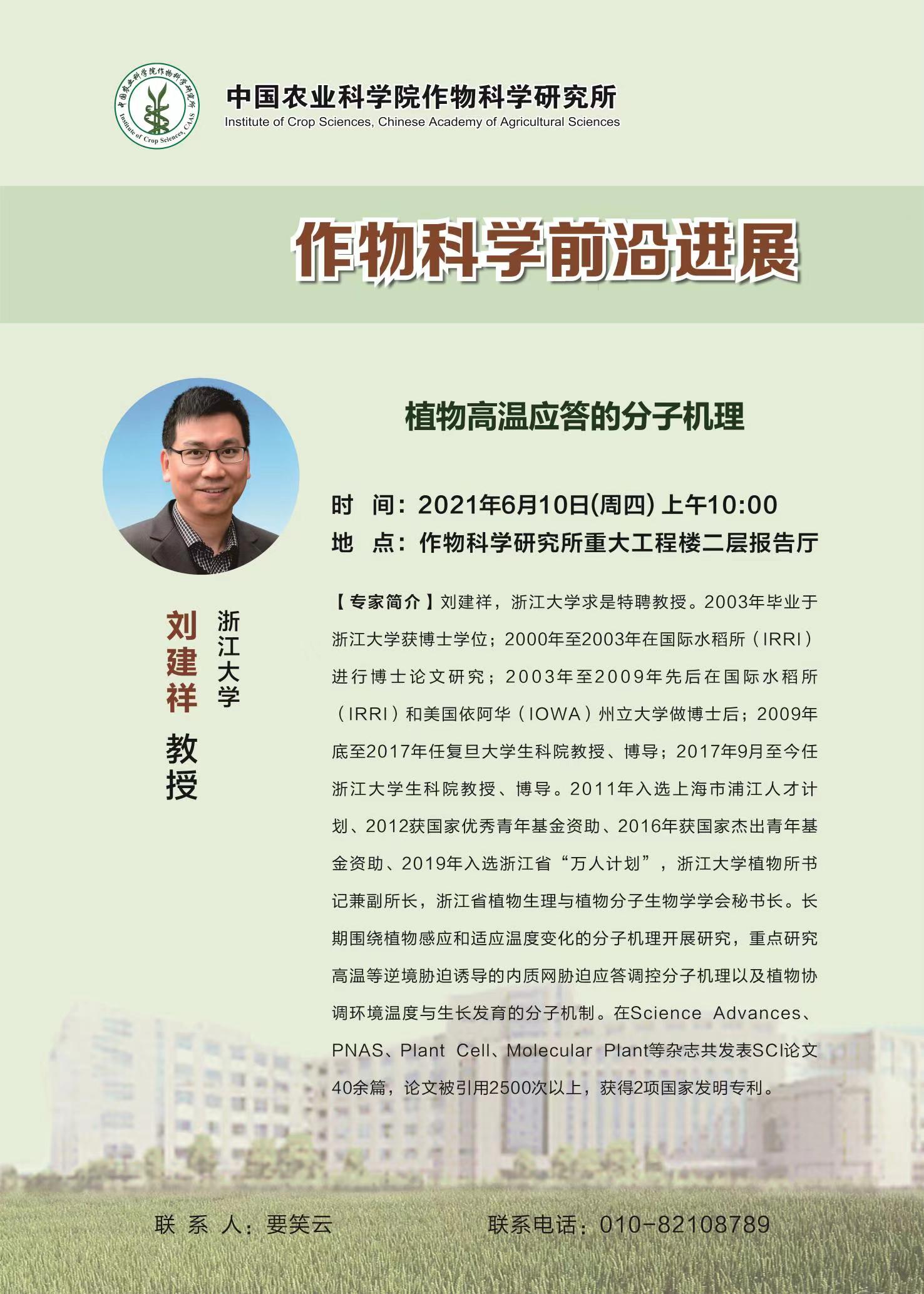 【作物科学前沿进展】刘建祥研究员 植物高温应答的分子机理