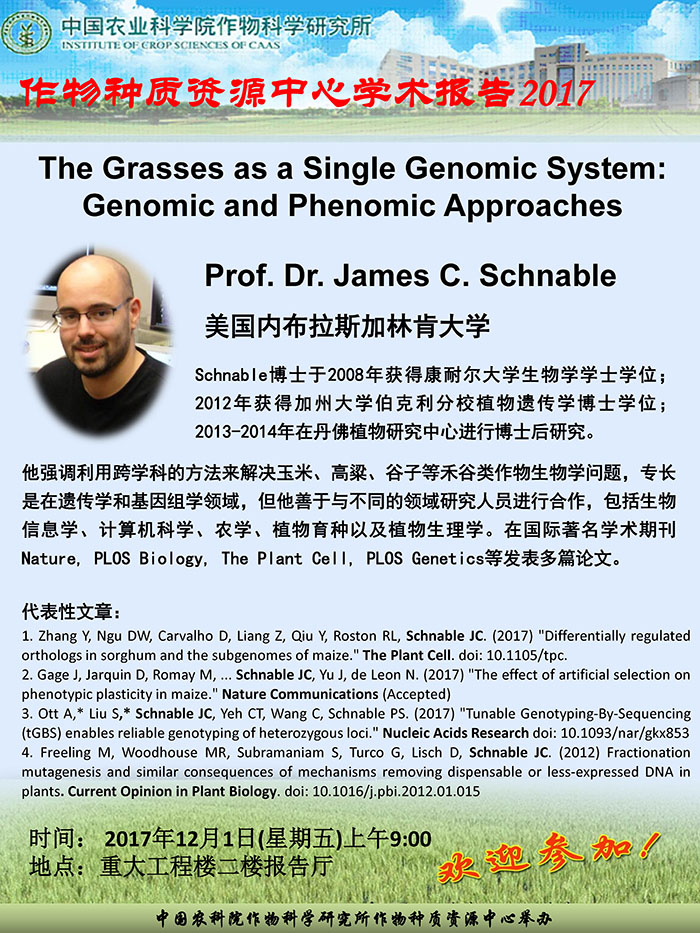 12月1日 James C. Schnable, The Grasses as a Single Genomic System: Genomic and Phenomic Approaches