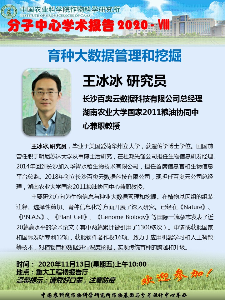 王冰冰 研究员 育种大数据管理和挖掘(分子中心学术报告2020-8)