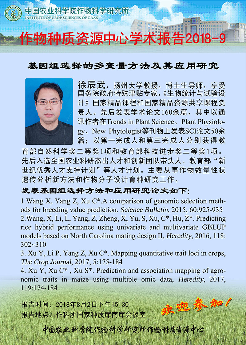 8月2日 徐辰武 基因组选择的多变量方法及其应用研究