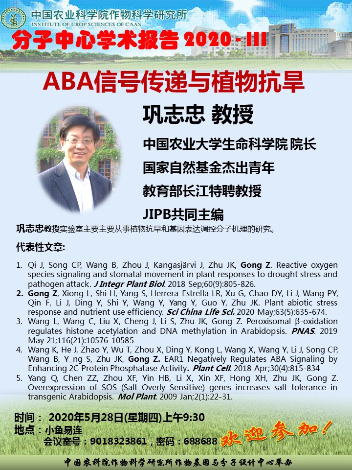 巩志忠 教授,ABA型号传递与植物抗旱(分子中心学术报告2020-3)
