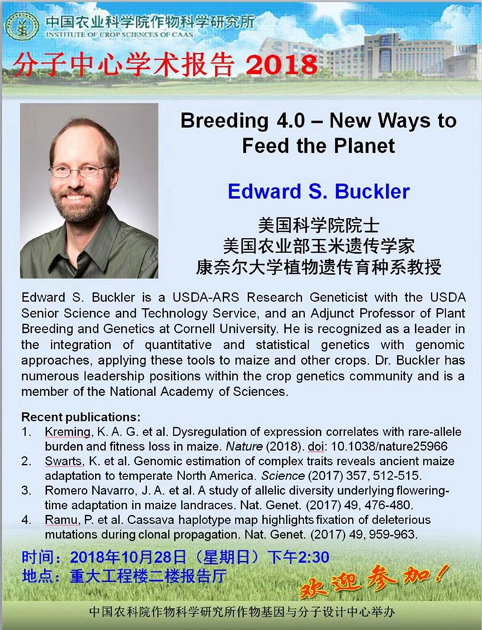 10月28日 Edward S. Buckler, Breeding 4.0- New Ways to Feed the Planet