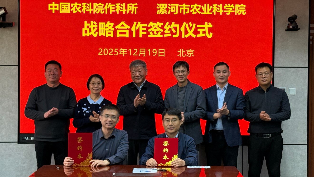 作科所与漯河市农科院深化科技合作12月19日,中国农业科学院作物科学研究所与漯河市农业科学院在北京举行战略合作签约仪式。作科所副所长王文生与漯河农科院党委书记巴磊分别代表双方签约。漯河市副市长王继周、作科所所长周文彬、河南粒粒金种业...2025.12.25