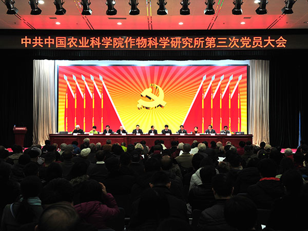 2017年11月27日上午,中共中国农业科学院作物科学研究所第三次党员大会在国家农业图书馆报告厅召开。本次大会的主题是“不辱使命 开拓创新 为支撑国家粮食安全创建世界一流作物科学中心而努力奋斗”。全所359名党员参加了本次大会。院党组成员、人事局局长贾广东、院直属机关党委常务副书记王晓举参加了会议。会议由作科所所长、党委副书记刘春明同志主持。