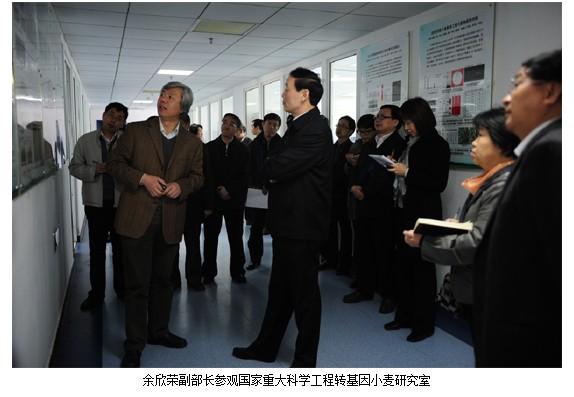 余欣荣副部长先后考察了国家农作物种质资源长期库;国家农作物基因资源与基因改良重大科学工程公共开放实验室、小麦基因资源研究室、转基因小麦研究室、水稻和大豆分子生物学研究室,并听取了相关科研进展情况汇报。