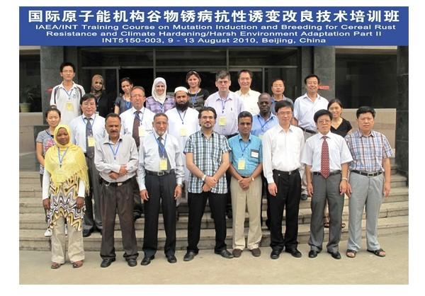 本次培训班是IAEA跨地区项目INT5150“利用诱变技术应对小麦秆锈病新小种Ug99跨界威胁”2010年度重要活动之一。来自阿尔及利亚、埃及、印度、伊拉克、巴基斯坦、南非、沙特阿拉伯、苏丹、突尼斯、土耳其、乌干达、也门和中国等13个成员国的16名学员以及6名中国授课专家参加了本次培训班。