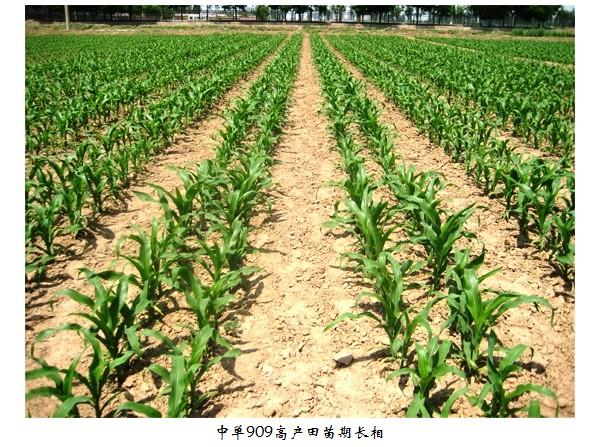 中单909为中国农科院作物科学研究所选育而成的中熟中穗型高产玉米新品种,可春播和夏播。植株总叶片数20,在北京春播生育期110天,比郑单958熟期早2天。抗病好,抗倒性优于郑单958,活秆成熟。该品种于2005年1月在海南组配而成,品种保护号20090743.9。高产田采取了以下关键栽培技术。